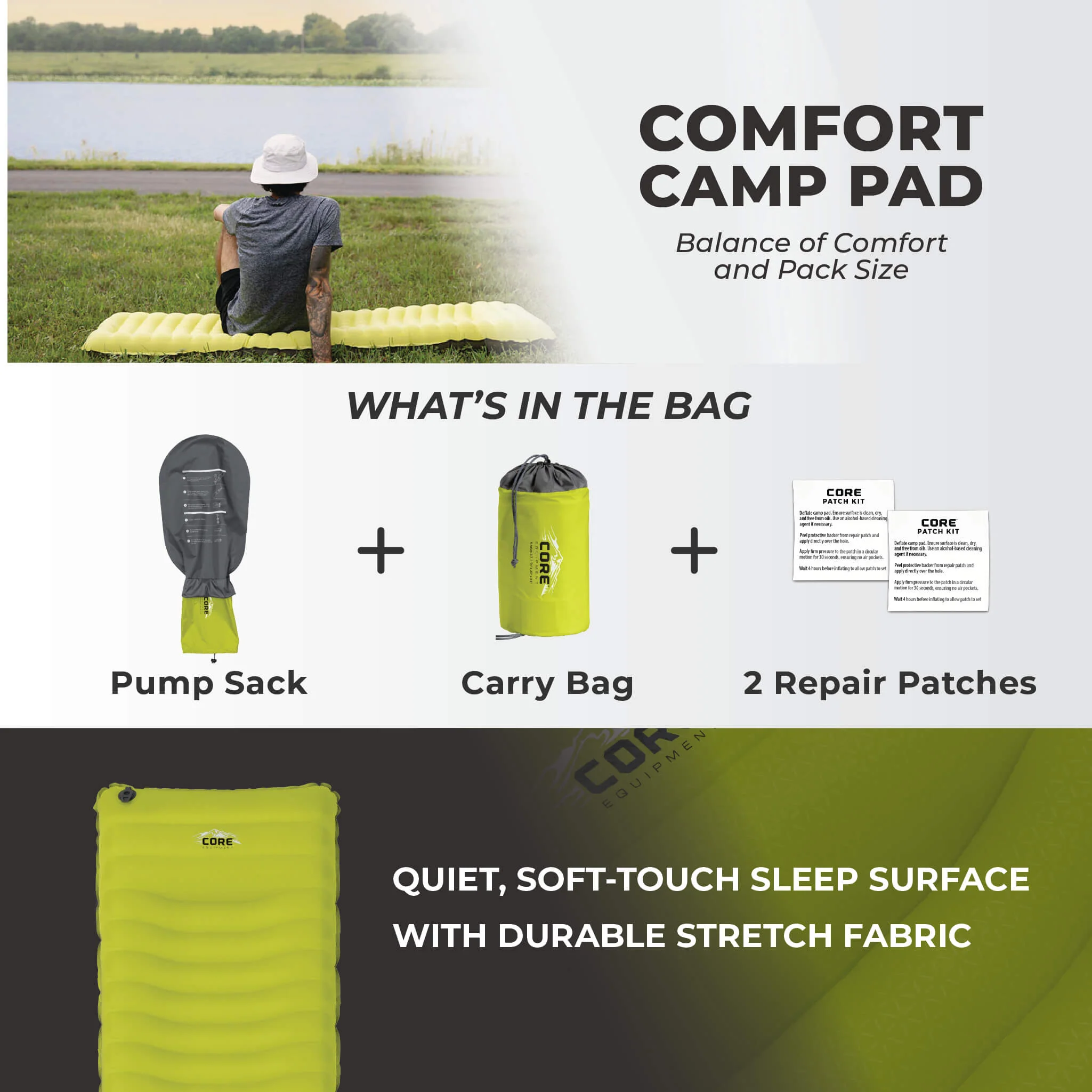 - DURABLE CONSTRUCTION: Made with a soft-touch 30D Polyester stretch fabric top that feels soft against the skin and a durable 75D Polyester bottom layer, this sleeping pad is designed to handle all your adventures.