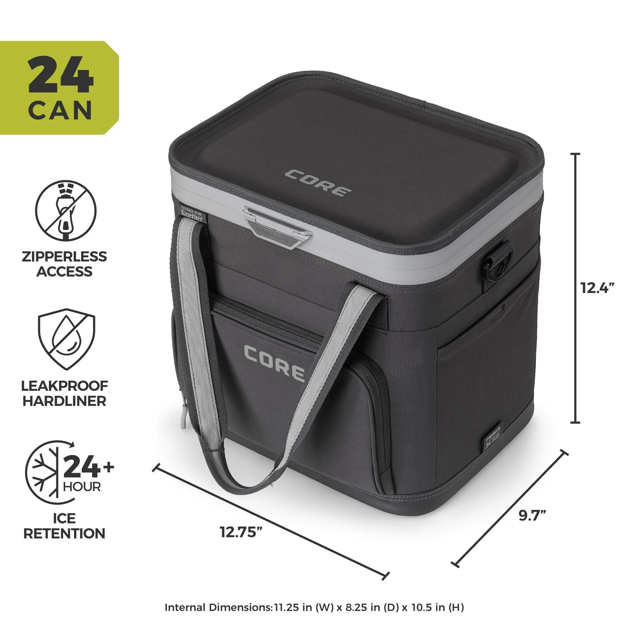 Get ready for lake days, tailgates, sports events, and everyday outings with the CORE FlipBackâ„¢ Day Cooler. With no zippers to slow you down, the MagSnapâ„¢ magnetic lid provides quick access while sealing in cold, and a one-handed latch keeps it secure on the go. Built with a leakproof, food-safe hard liner, it delivers 24+ hours of ice retention to keep drinks cold longer. Multiple pockets and carry options make it easy to bring along and keep essentials close wherever you go.